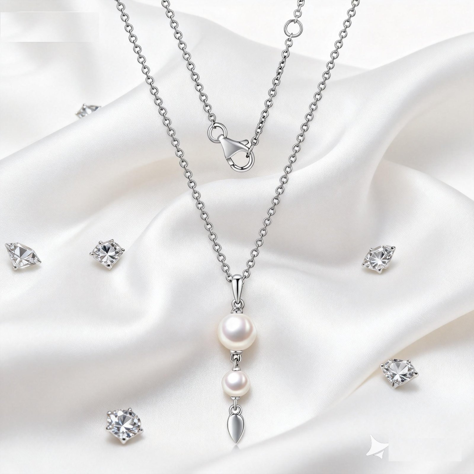 Motherhood White Fresh Water Pearl Drop Necklace in 925 silver, 16″+2″