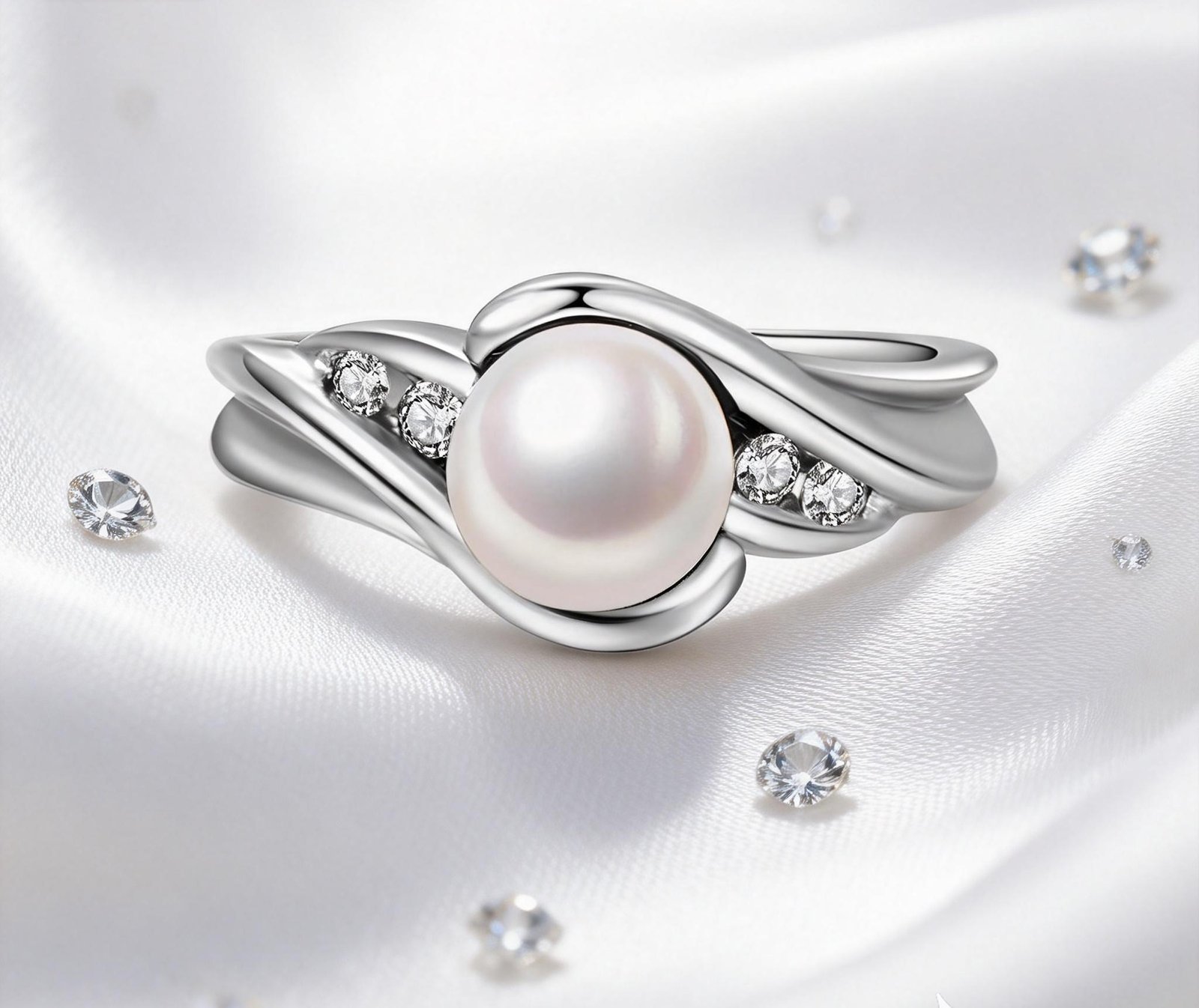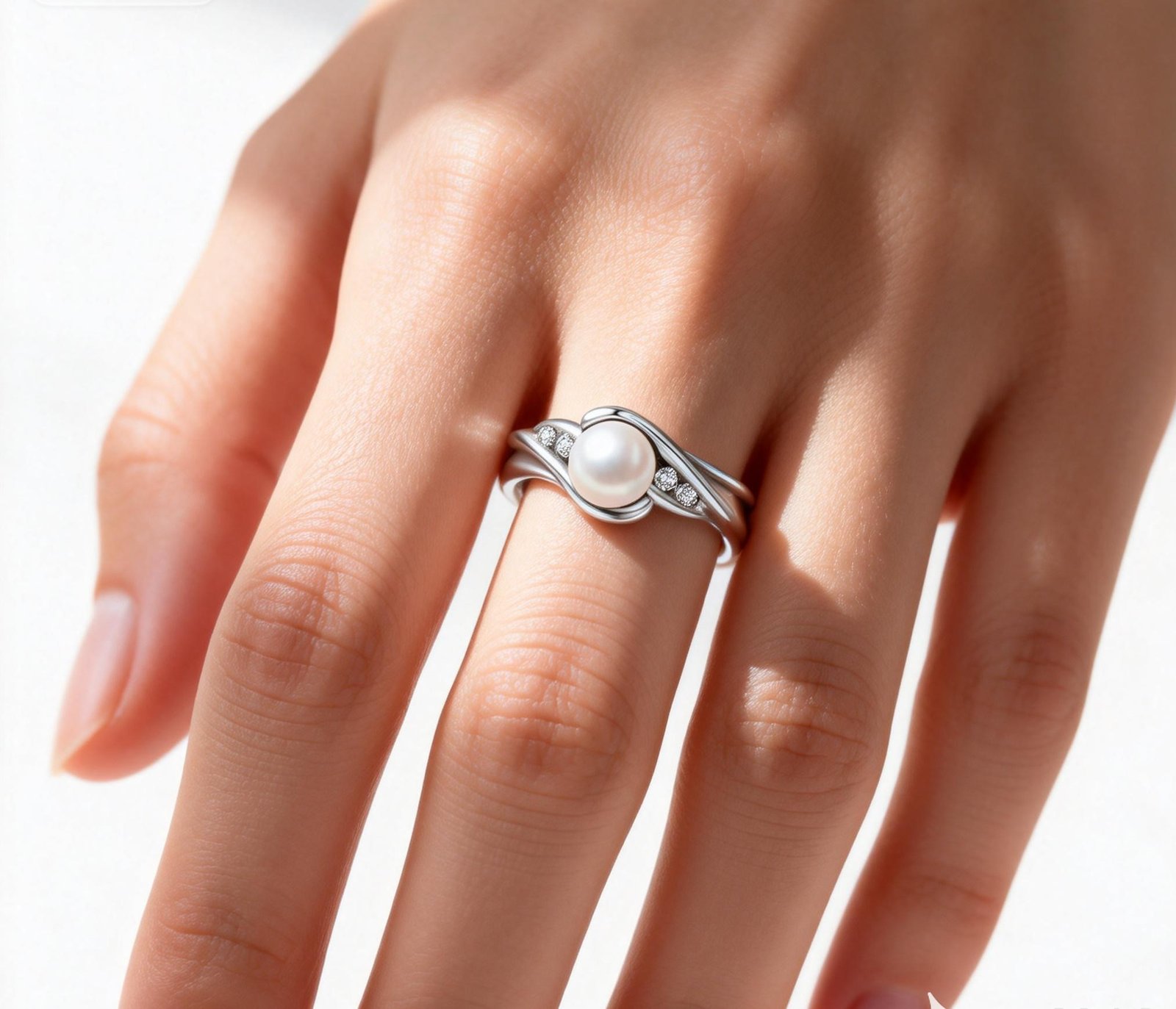 White fresh water pearl ring with lab grown diamond accent in 925 silver